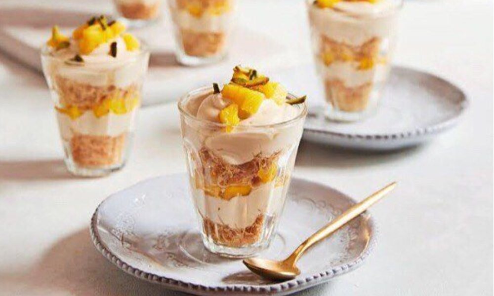 طريقة عمل كاسات الكنافة بالمانجة، كيف يمكننا الاستفادة من فاكهة الصيف اللذيذة مثل المانجو في تحضير حلوى مميزة؟ في هذا السياق، نقدم لك طريقة عمل كنافة المانجو في أكواب التقديم، وهي حلوى رائعة تُقدم باردة وتناسب العزومات العائلية والاحتفالات مع الأصدقاء، وفقًا لما نشره موقع “Foodies“.